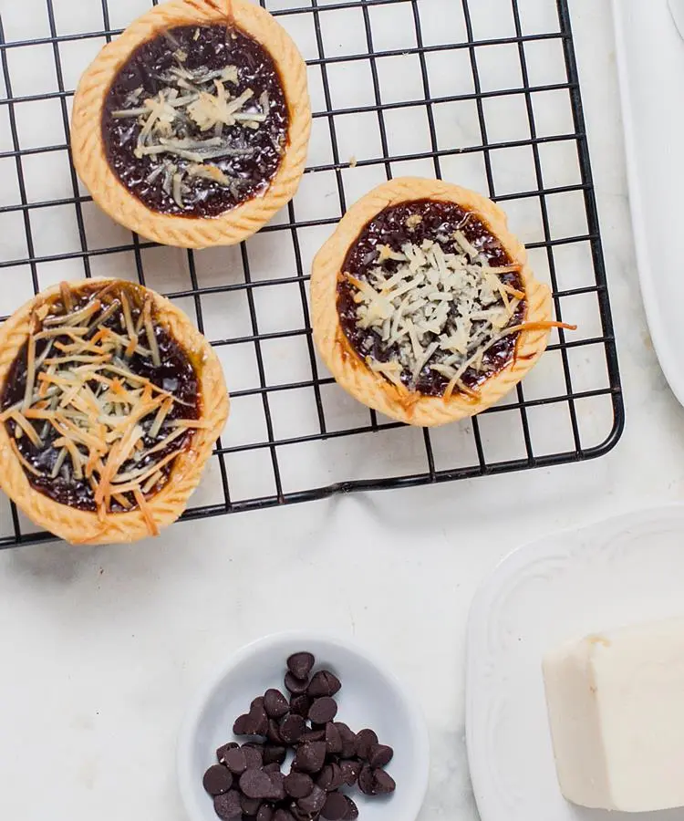 Pie Susu Cokelat dan Keju mempunyai kenikmatan fla lembut dari lelehan cokelat premium dengan parutan keju diatasnya, tidak lupa dengan pinggiran biskuit yang gurih dan renyah. Kalau kamu ingin menikmati dua rasa menjadi satu, yang satu ini nih juaranya! 1 kotak isi 10 pcs.
